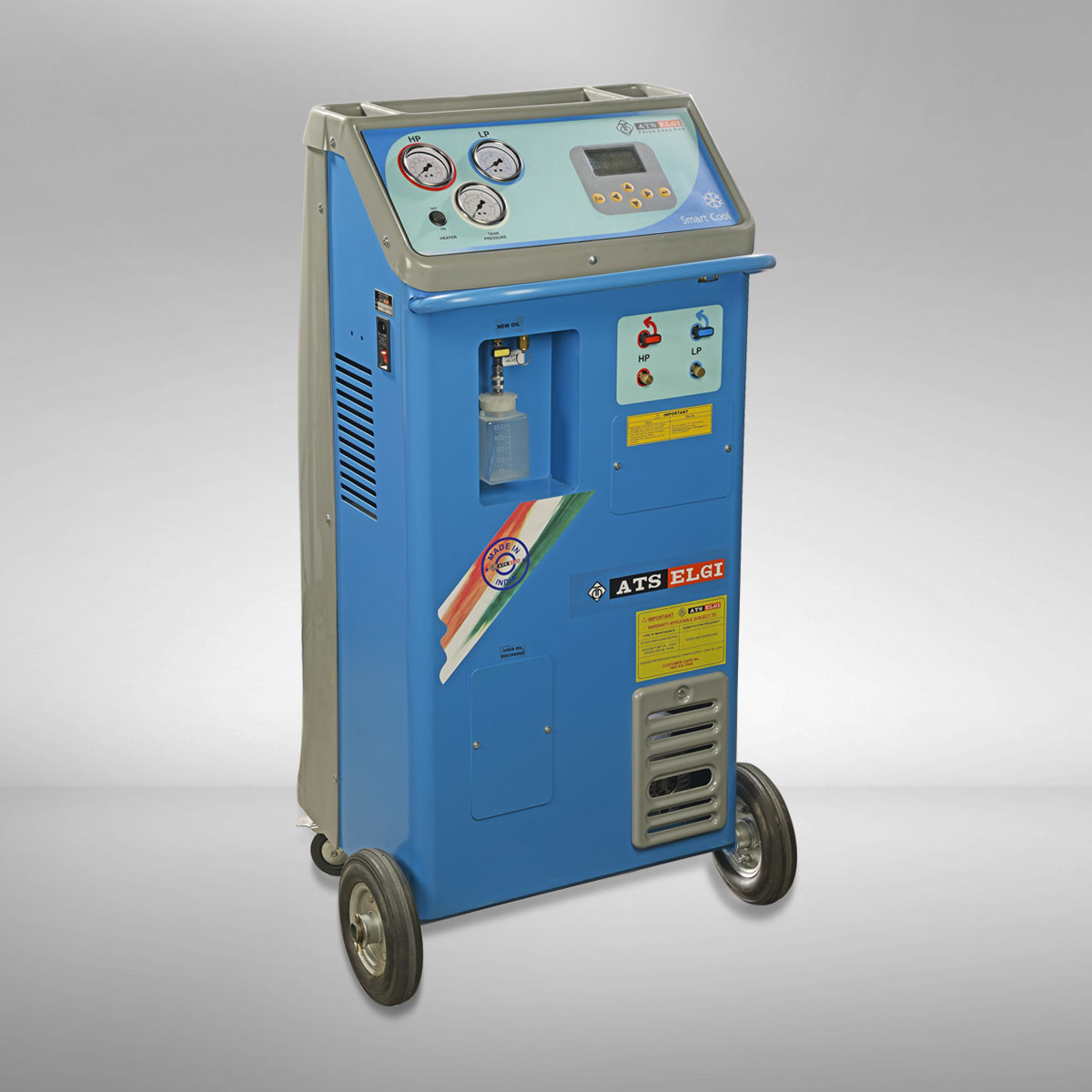 The ATS ELGI Smart Cool is a Semi Automatic Single gas station for Recovering, Recycling and Recharging R134a refrigerent